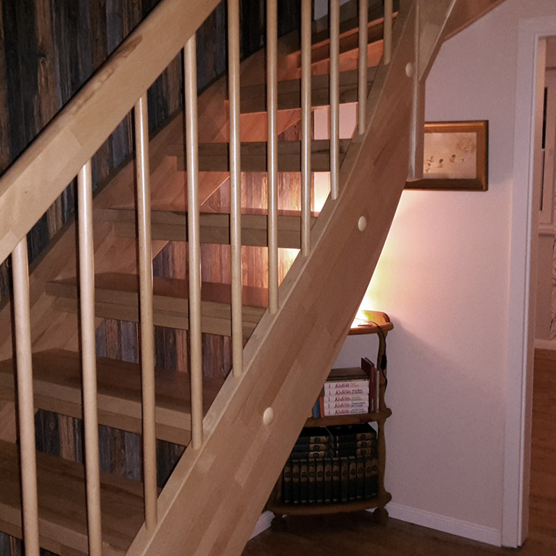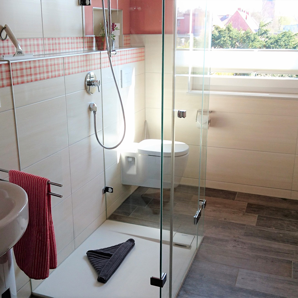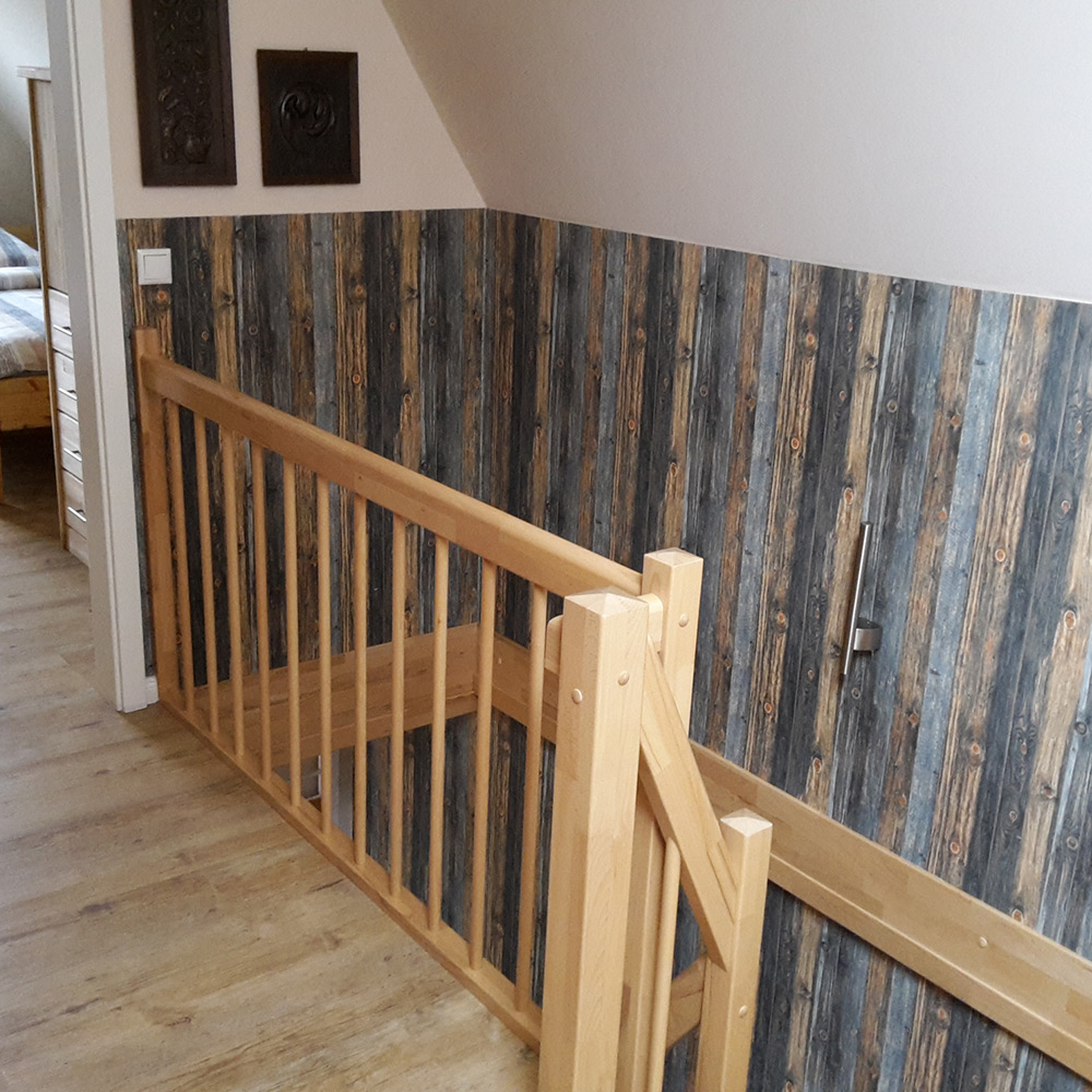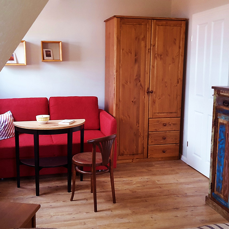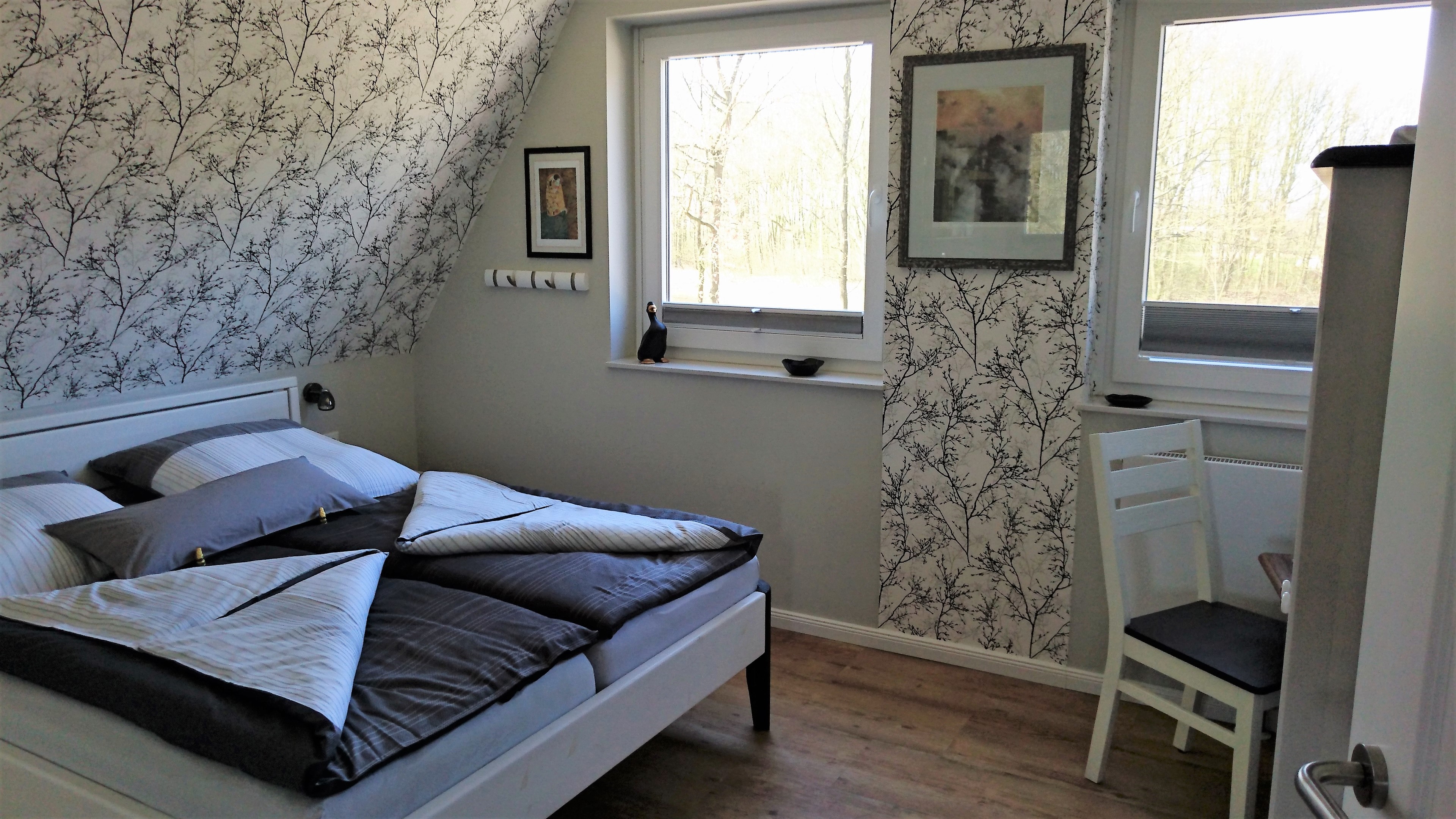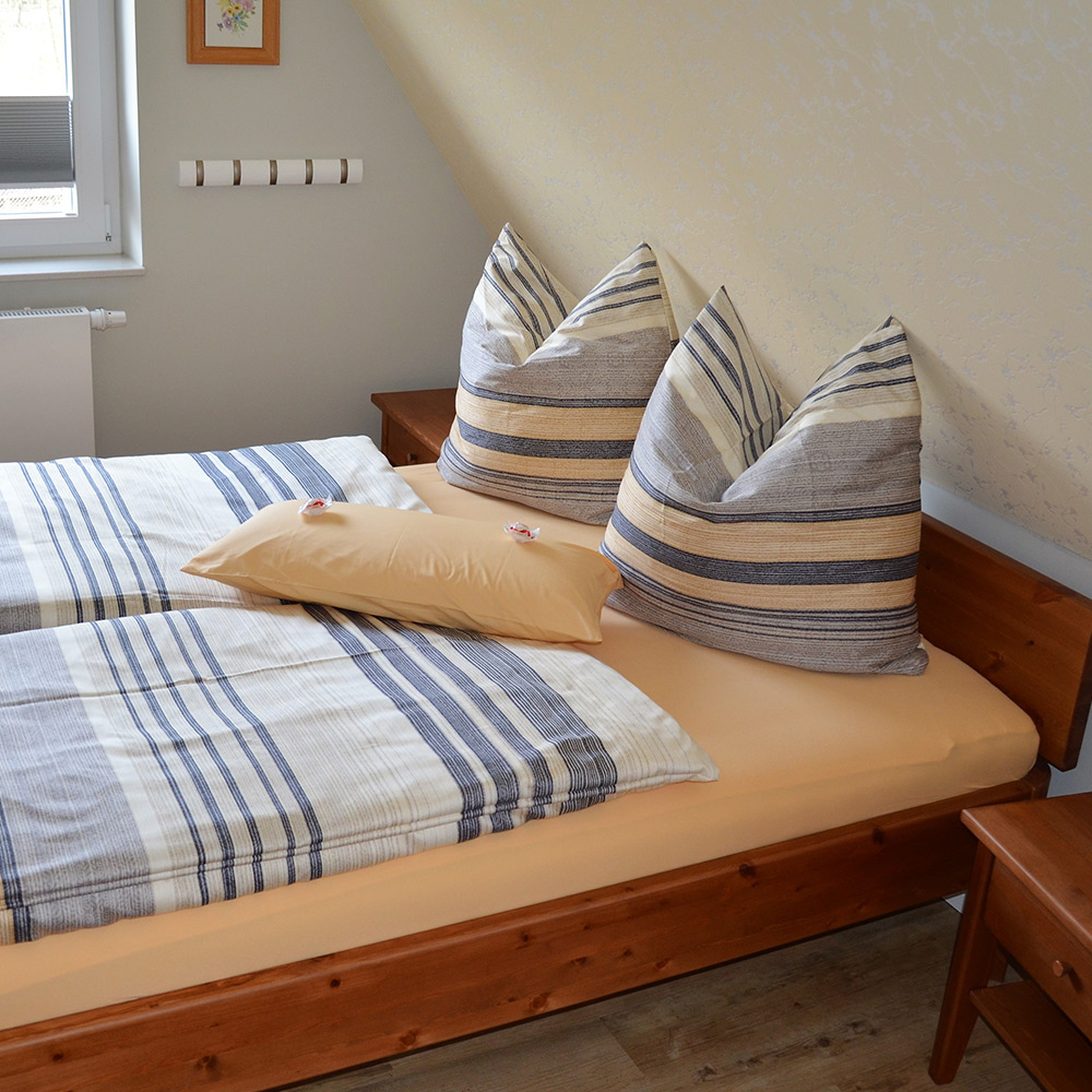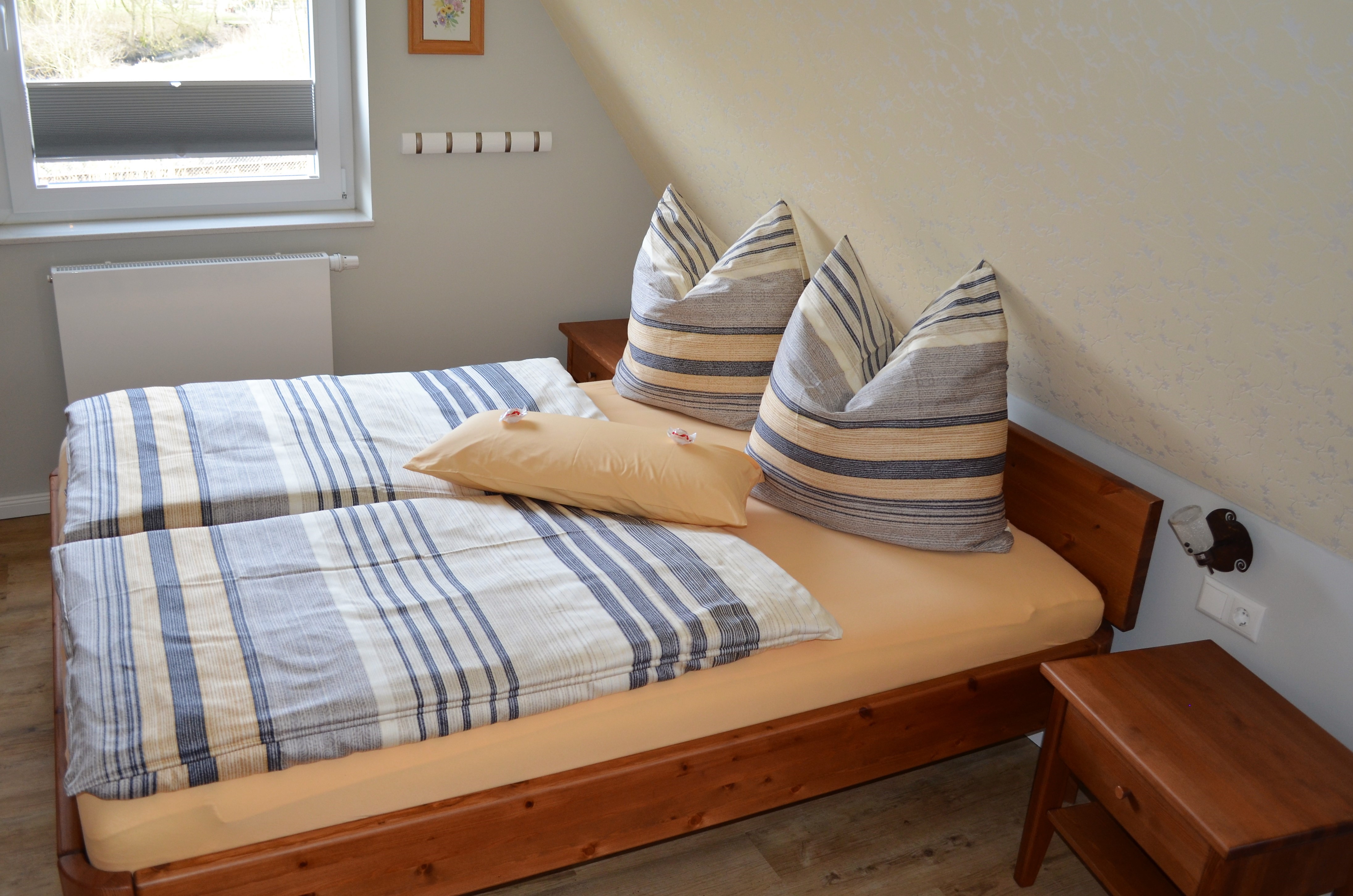 Für den Rückzug oder zur Nachtruhe sind im Obergeschoss 3 Schlafräume mit Verdunkelungsplissee und jeweils eigenem Duschbad für Sie vorbereitet. Die Betten sind bezogen, Hand-, Duschtücher, Fön und das erste Verbrauchsmaterial liegen bereit. Jedes Zimmer verfügt über einen Fernseher. In einem Zimmer befindet sich zusätzlich ein Schlafsofa.