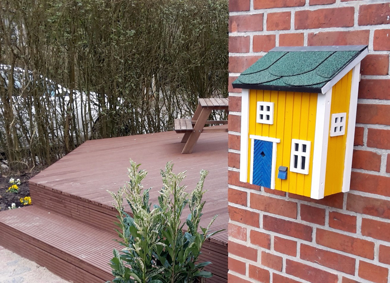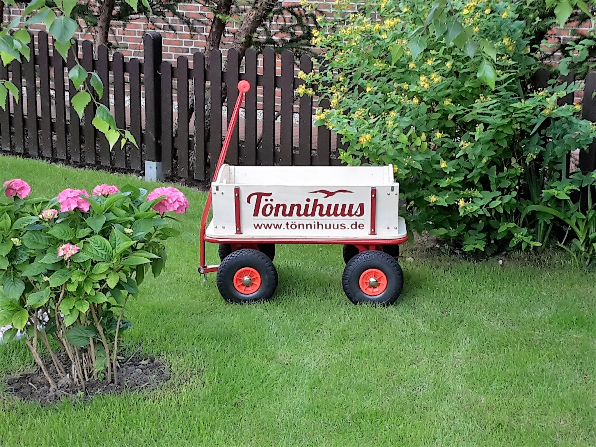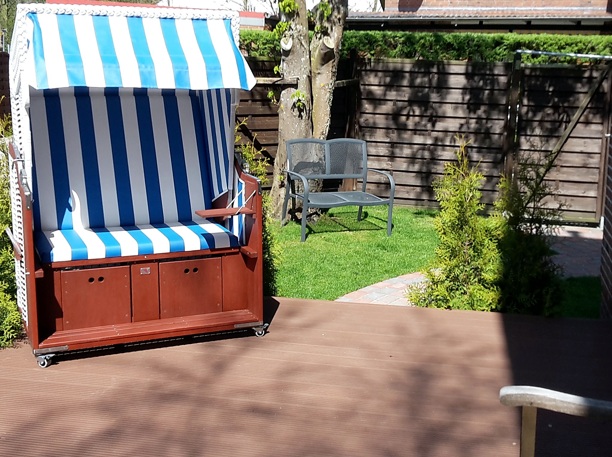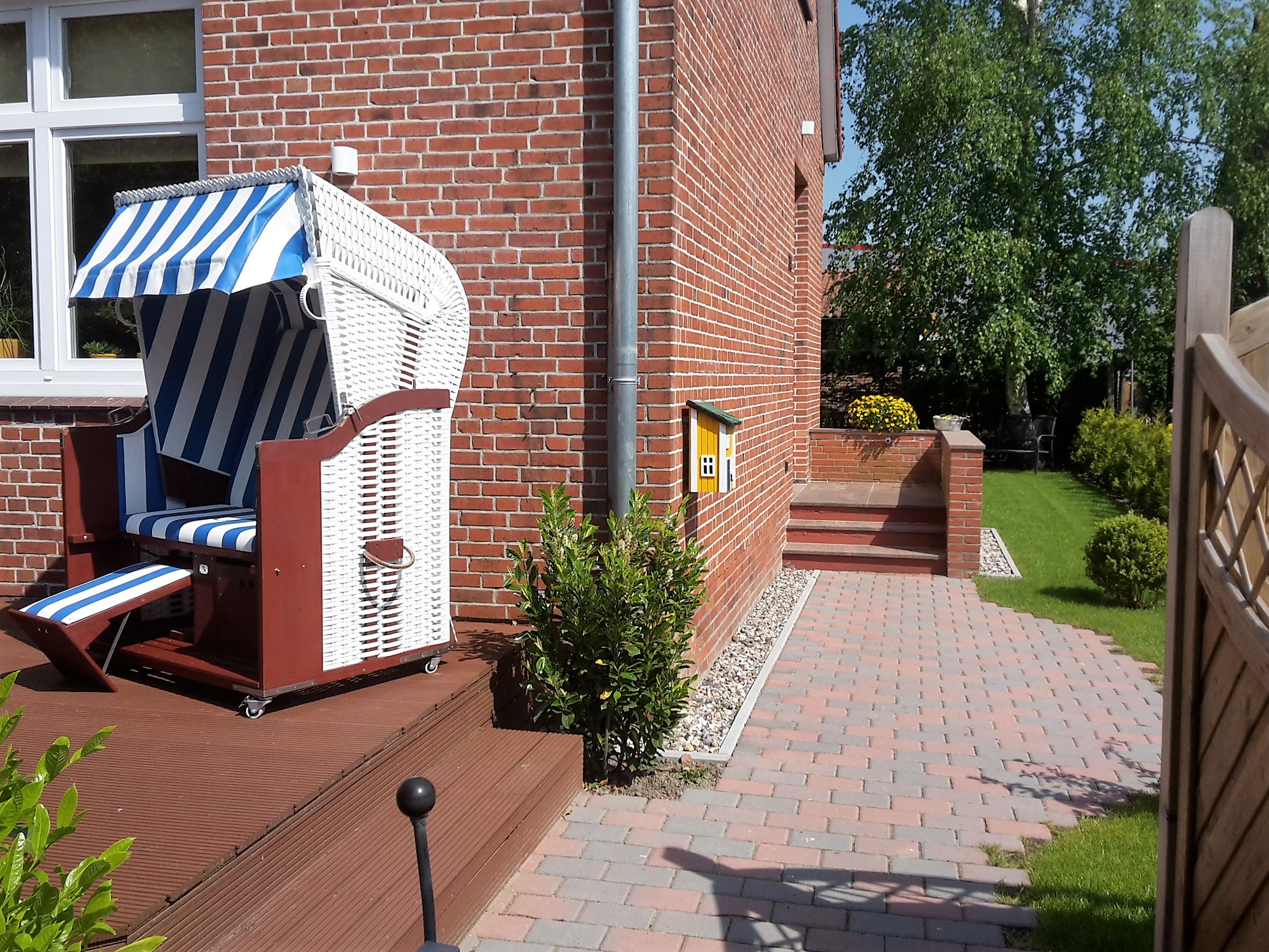 Sonnenbaden, frühstücken oder grillen können Sie auf der 70 m² südwestlich ausgerichteten Terrasse. Gartenmöbel, Grill und 2 Strandkörbe warten auf die Nutzung. Für die kleineren Gäste gibt es eine Kinderpicknickbank und eine Buddelkiste. Ihre Fahrräder stellen Sie in einem Anbau ab. Hier gibt es Steckdosen für die Ladegeräte Ihrer E-Bikes. Parkplätze sind auf dem Grundstück. Weitere Parkplätze stehen in der Sackgasse vor dem Haus zur Verfügung.